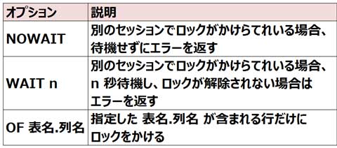 OF 表名.列名オプションを指定すると、指定した表名.列名を含む行のみにロックを限定できます。