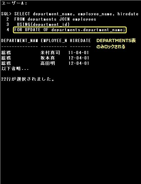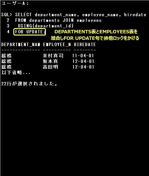 FROM句に複数の表が指定されている場合は、それぞれの表の対象となる行にロックをかけますが、