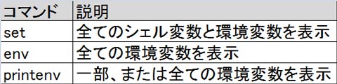 なお、「set」コマンドを引数なしで実行すると、設定済みのシェル変数や環境変数、シェル関数が表示されます。