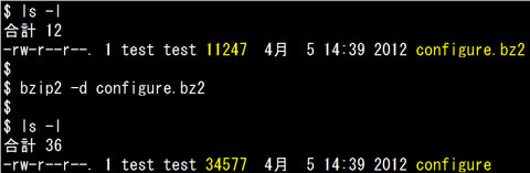 bzip2形式のファイルは、bzip2コマンドの-dオプション、もしくはbunzip2コマンドで展開できます。