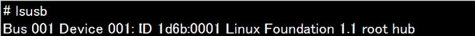 接続されたUSBデバイスの情報を表示するコマンドはlsusbです。