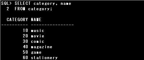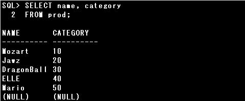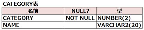 PROD表とCATEGORY表では、CATEGORY列とNAME列が同名で同じデータ型の列になりますので、これらの列の値の組合せが一致する行が結合されます。