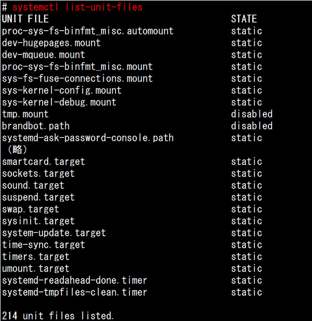 利用可能なユニットの一覧を表示するにはlist-unit-filesサブコマンドを使用します。