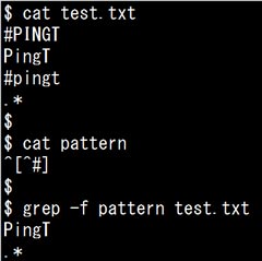 中身を抜き出した「grep '^[^#]' test.txt」も同じ動作をするはずです。