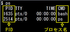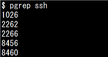 また、pgrepコマンドで実行中のプロセスから特定の名前を持つプロセスIDを検索することができます。