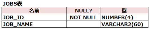 EMPLOYEES表とJOBS表の構造を確認して下さい。
