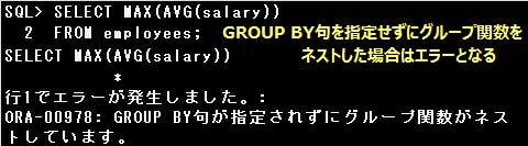 グループ関数をネストする場合は、必ずGROUP BY句を指定しなければなりません。