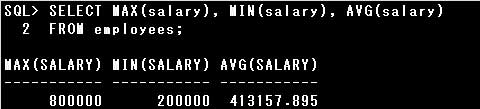 ・SELECT MAX(salary), MIN(salary), AVG(salary) FROM employees;
