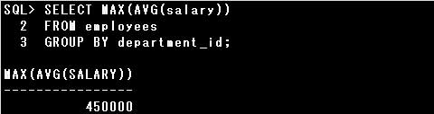 ・SELECT AVG(MIN(MAX(salary))) FROM employees GROUP BY department_id, job_id;