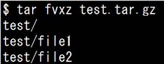 「test.tar.gz」は、拡張子が「tar.gz」であることから、複数のファイルがtarコマンドでアーカイブされた後、gzipで圧縮されている事を示しています。