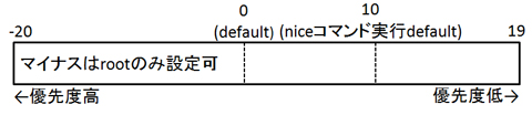 なお、nice値を指定・変更する主な目的は、実行に長時間かかったり重要ではないプログラムを低い優先度で実行するためなので、一般ユーザでは以下の操作はできません。以下の操作を行うにはroot権限が必要です。