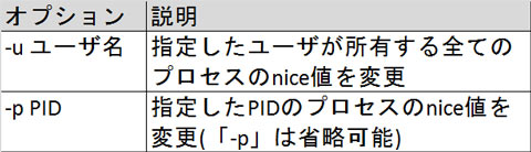 renice [-n] nice値 オプション