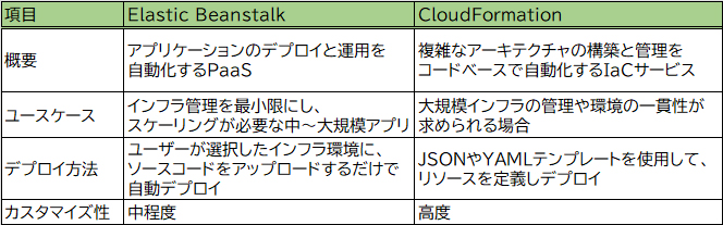 インフラ環境を自動的に構築・管理するサービスには、「AWS CloudFormation」のほかに「AWS Elastic Beanstalk」などがあります。
