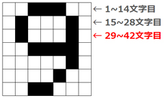 縦7横7の列なので、横が1〜7文字目思っていたのに、答えを見ると、1〜14文字目と表記されている。
