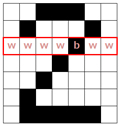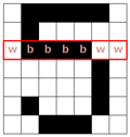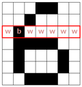 (1) 同じ色の画素データが連続する場合,"w"又は"b"の後に連続する画素の数をつなげて出力する。例えば,"b,b,b"は"b3" になる。