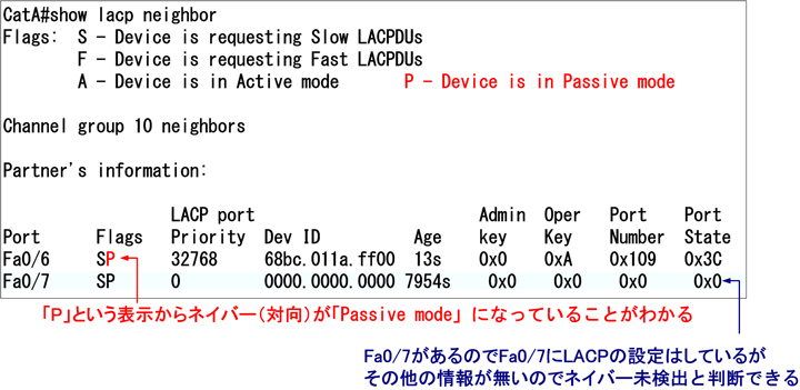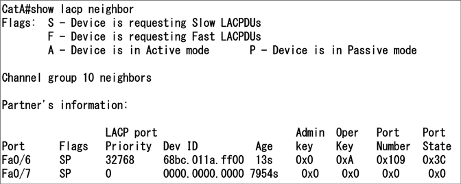 passiveモードとイーサチャネルを形成するモードは activeモードなので、CatA側はactiveモードにしていることがわかります。