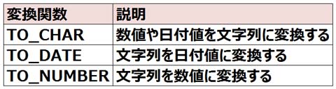 明示的なデータ変換とは、変換関数を使用して行うデータ変換のことです。Oracle Databaseにはさまざまな変換関数が用意されてます。