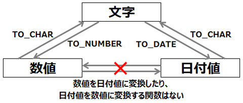Oracleでは、値をあるデータ型から別のデータ型へ変換する事をサポートしています。