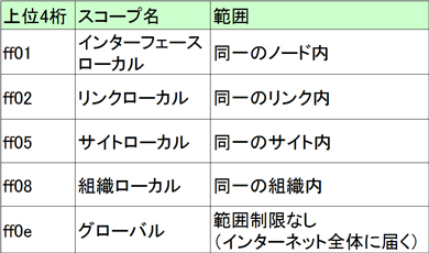 主なマルチキャストスコープ(マルチキャストを送信する範囲)は以下の通りです。