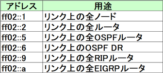 マルチキャストアドレスは特定のグループを指すアドレスです。IPv6ではブロードキャストアドレスがなくなった代わりに、用途ごとに決められたマルチキャストアドレスを使用します。