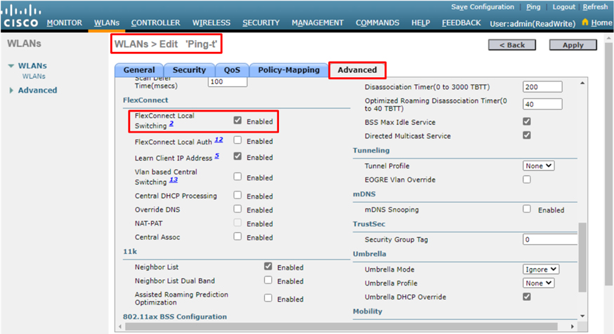 また、特定のWLANのみFlexConnectモードで動作させることも可能です。
