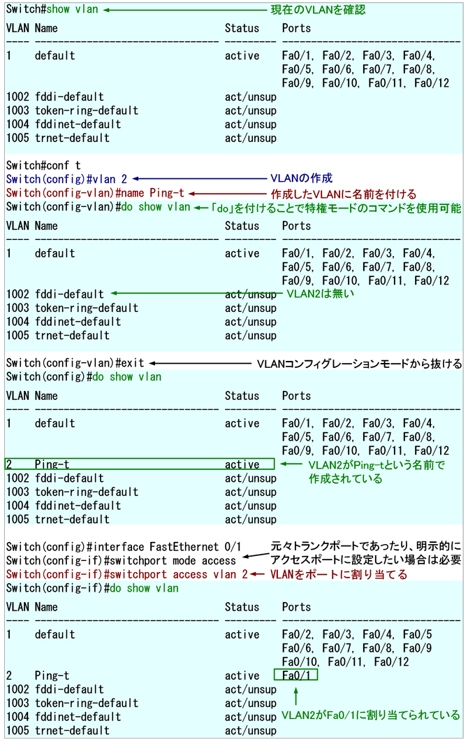 とは言え、CCNAの試験でVLAN導入の必須ステップを問われた場合は、VLAN名の指定が無くとも(VLAN名は省略しても自動で付くというステップが必ず入るため)、最初に示した3つのステップが正解の選択肢となりえます。