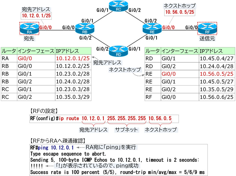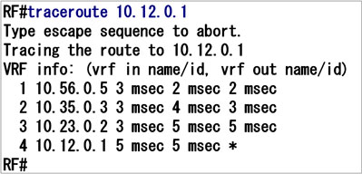 RFにおいてRA宛のホストルートを設定した後、RFとRA間の疎通確認を行うためのコマンドはどれか。