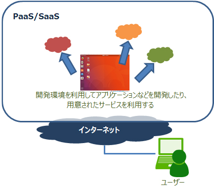 OSやミドルウェアはクラウドサービス側で提供されているものを利用し、ユーザーはその上で動作する環境を使用します。