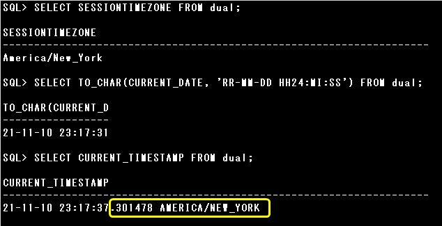 SELECT SESSIONTIMEZONE FROM dual;