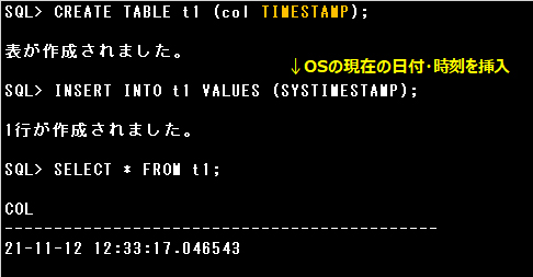 INSERT INTO t1 VALUES (SYSTIMESTAMP);