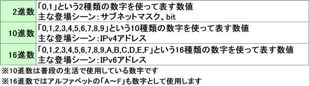 数値の表記方法には「2進数」や「10進数」や「16進数」といった種類があります。