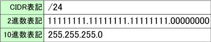 CIDR表記の場合はネットワーク部のビット数を「/」の後に書きます。