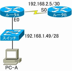 ルータAのE0には使用できる最後のアドレスを、PC-Aには使用できる最初のアドレスを割り当てる。