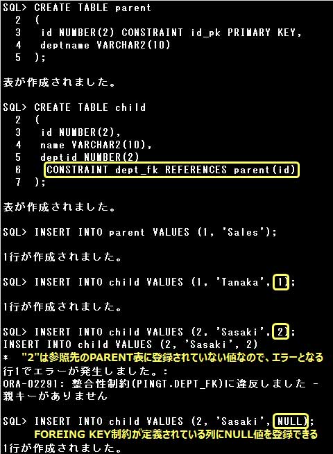 deptid NUMBER(2) CONSTRAINT dept_fk REFERENCES parent (id)