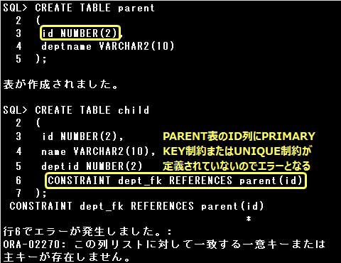 FOREIGN KEY制約で参照できる親表の列は、PRIMARY KEY制約またはUNIQUE制約が定義されている列だけです。