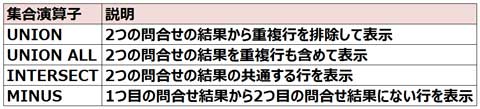 集合演算子を用いて、複数の問合せの結果を1つにまとめて表示する問合せを複合問合せといいます。