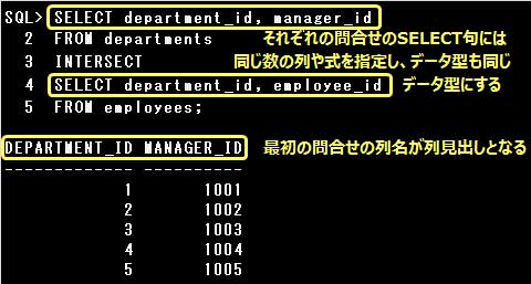 ・1つ目の問合せと2つ目の問合せで、SELECT句に指定する列名が異なっている場合、2つ目の問合せの列名が列見出しに使用される
