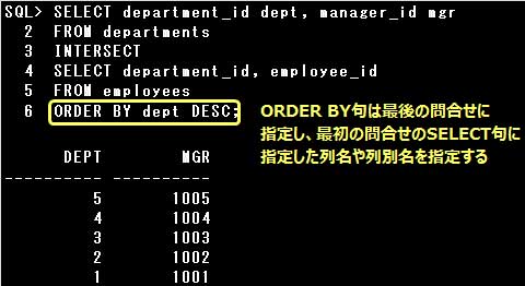 ・ORDER BY句は複合問合せの最後の問合せに指定する