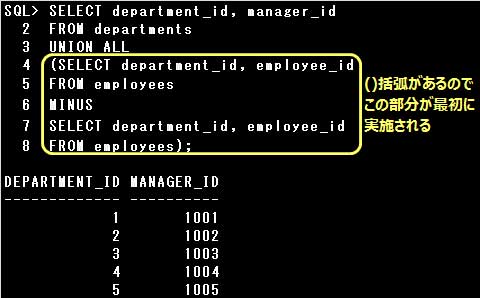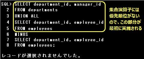 ・1つのSQL文に複数の集合演算子が使用されている場合は、SQL文の先頭から順番に複合問合せが実行される