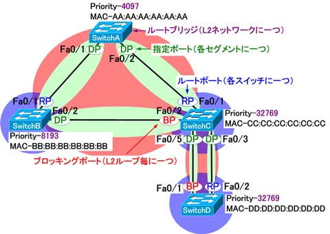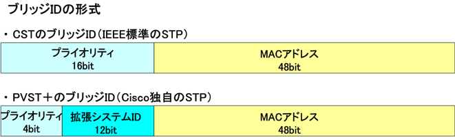 ブリッジID(BID):ブリッジプライオリティ(デフォルト32768)+MACアドレス