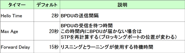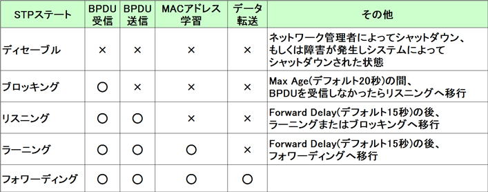 上記表の通り、リスニング・ラーニング状態で発生する待機時間は「Forward Delay」の値です。