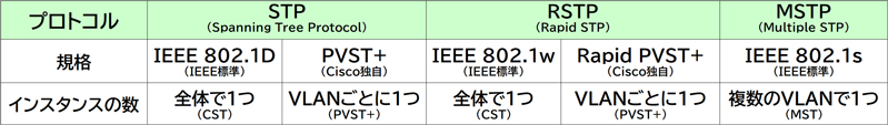 CSTは、VLANの数に関係なく単一のインスタンスを構成し、PVST+はVLANごとにインスタンスを構成し、MSTは複数のVLANを1つのグループにまとめてインスタンスを構成します。
