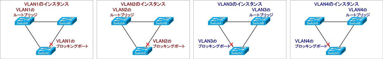 VLANごとにインスタンスを構成するため、負荷分散などの設計を柔軟に行えます。