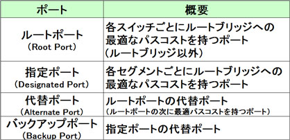 ポートパスコスト:ポートが動作している速度によって決められる値(速度が速いほどコストが低い)