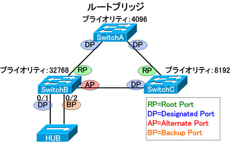 「ルートブリッジのポートは全てDP」 「RPの対向ポートは必ずDP」