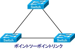 ポイントツーポイントリンクに分類されるのは、スイッチのポートが全二重に設定され、スイッチが1対1で接続されている場合です。