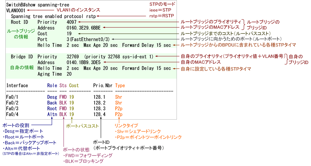 スパニングツリーの情報は以下のコマンドで表示できます。