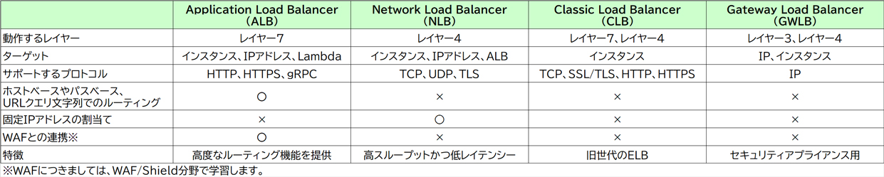 [ELBの比較表]