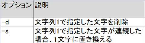 cat ファイル名 | tr [オプション] [文字列1 [文字列2]]
