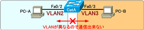 通常、異なるVLANに属するデバイスとの通信は出来ません。